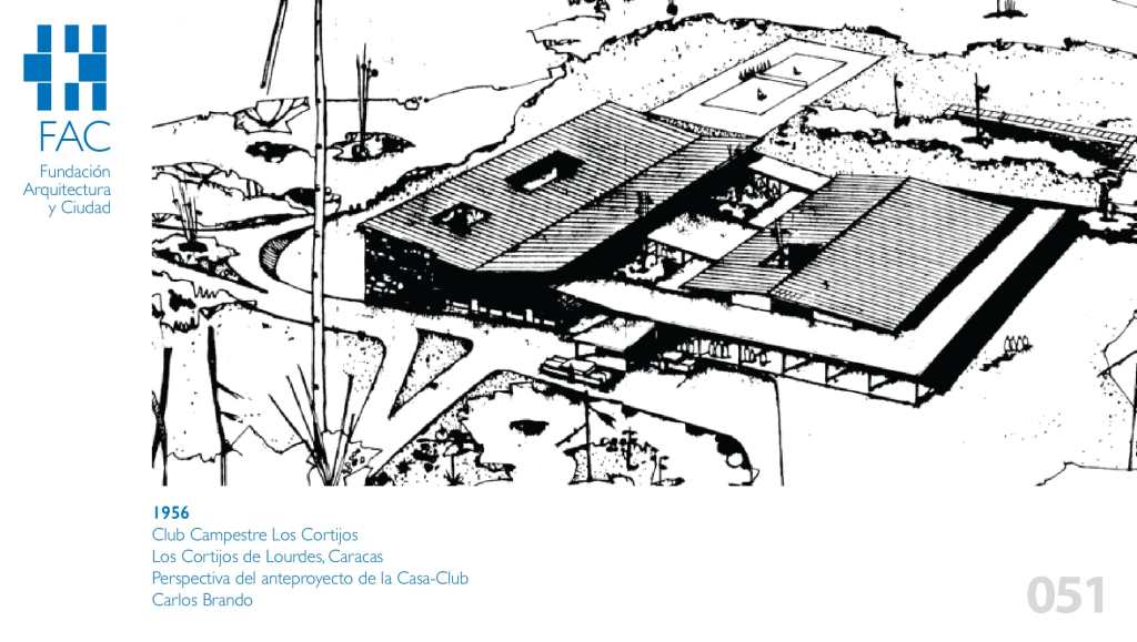Formado a comienzos de los años 50, siguiendo los patrones del racionalismo y el funcionalismo bajo la tutela de Villanueva (con quien trabajó en el Taller de Arquitectura del Banco Obrero -TABO-), cuidadoso con lo constructivo y lo espacial, atento a la reinterpretación del pasado, Brando, basado en una retícula estructural de cinco metros por cinco metros, diseña para la casa-club una edificación en la que utiliza patios, corredores y aleros, materiales nobles, color, techos inclinados recubiertos de tejas criollas y además prioriza la consideración de las variables climáticas.