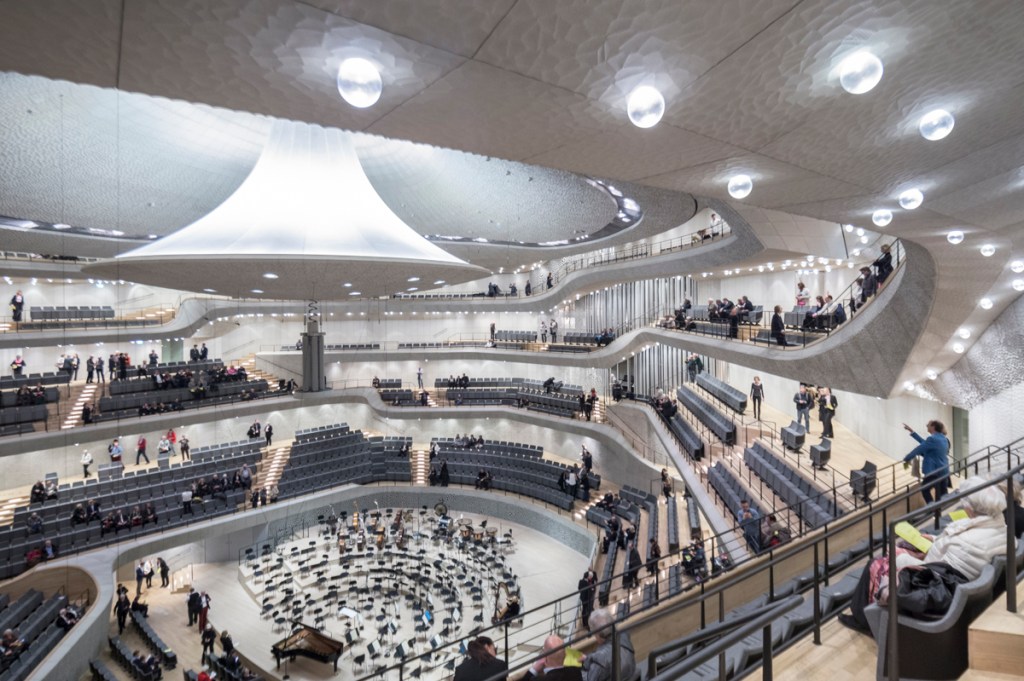 Y no es poco lo que puede decirse a partir del despliegue informativo y la cobertura de que ha sido objeto esta peculiar pieza de 125.512 metros cuadrados de construcción, que ocupa un poco más del 50% de un lote de 10.540 metros cuadrados, que se superpone a unos robustos, pesados y abstractos almacenes portuarios abandonados que soportan la acristalada masa colocada sobre ellos, la cual alberga un centro cultural con una sala de conciertos para 2100 asientos y un salón de música de cámara para 550 oyentes (incrustados entre pisos de lujo y un hotel de cinco estrellas con servicios integrados como restaurantes, un centro de salud y fitness e instalaciones para conferencias), cuyo costo se elevó de 75 a 789 millones de euros en siete años, tan alejada del austero y sobrio trabajo desplegado, por ejemplo, por el grupo RCR Arquitectes, ganadores de la más reciente edición del Premio Pritzker.