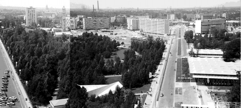 Así, de entre las ferias de segundo orden de carácter “especial” avaladas por la IBE quizás la más destacada dentro del lapso 47-58 fue la Exposición Internacional de Construcción de Berlín, mejor conocida como la Interbau de Berlín, identificada por el lema “La ciudad del mañana” y cuyo objetivo central era la reconstrucción del barrio de Hansa devastado durante la II Guerra Mundial. A la convocatoria hecha a participar en dicha reconstrucción, que contemplaba la realización de 1160 viviendas entre 1956 y 1957 dentro de un trazado seleccionado por concurso entre destacados urbanistas alemanes, se encontraban arquitectos de primera línea entre quienes se puede mencionar a Le Corbusier, Alvar Aalto, Arne Jacobsen, Johannes van der Broek y Jaap Bakema, Oscar Niemeyer, Pierre Vago y Walter Gropius integrado a The Architects Collaborative -TAC-. También como parte del evento realizado entre el 6 de julio y el 29 de septiembre de 1957 se incorporó la exposición “Técnica de la Construcción” en la que nuestro país estuvo representado por una obra del arquitecto Guido Bermúdez Briceño (1925-2001) en equipo con el ingeniero Johannes Johannson cuya vista desde la calle Altonaer preside la postal del día de hoy.