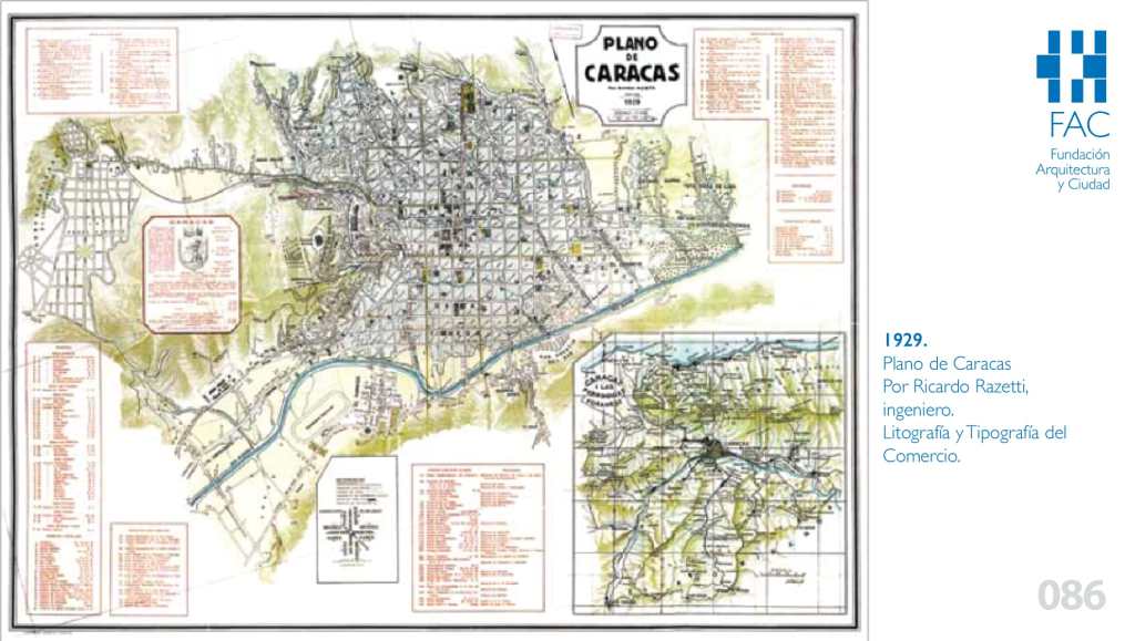 En 1929, Ricardo Razetti, quien desde 1897 se ocupaba de registrar la evolución de Caracas, realiza su última representación gráfica de la ciudad que será reproducida por la imprenta Litografía y Tipografía del Comercio.