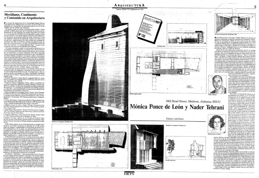 En lo relacionado al rol jugado por el semanario Arquitectura HOY es bueno señalar que paulatinamente y a lo largo de 5 entregas (comenzando por la del 02-09-95 que nos ocupa), se va calentando el ambiente, asumiendo Enrique Larrañaga la responsabilidad de hacerlo presentando la obra y trayectoria de algunos de los invitados al evento. Así, las páginas del semanario sirvieron para conocer la Mill Road House (Madison, Alabama, EEUU) de Mónica Ponce de León y Nader Tehrani (02-09-95), la Casa Ortiz (Ciudad de México) de Enrique Norten (16-09-95), la casa Ca´Ziff (Miami, Florida) de Teófilo Victoria y María de la Guardia (30-09-95), la trayectoria profesional de la oficina que conforman Machado & Silvetti (14-10-95) y la Casa La Pedrera (Santa María de Manquehue, Chile) de Cristián Undurraga y Ana María Devés (21-10-95).