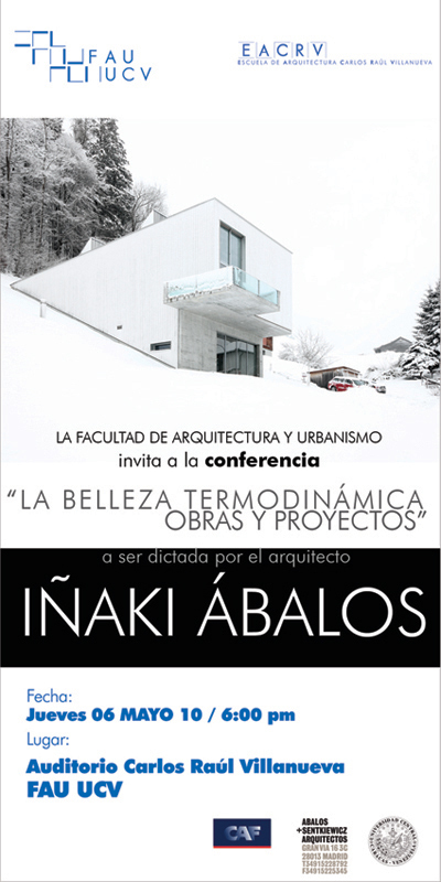 Así, a punto de iniciar su experiencia en Harvard y luego de cuatro años de su filiación profesional con Renata Sentkiewicz, Ábalos se presenta el 6 de mayo de 2010 en el Auditorio Carlos Raúl Villanueva de la FAU UCV, donde dictó la conferencia “La belleza termodinámica. Obras y proyectos”, oportunidad que aprovechó para mostrar la línea de trabajo que en ese momento lo caracterizaba que a su vez había generado un claro eje de investigación proyectual, cuyos principales planteamiento ya habían sido recogidos en La belleza termodinámica (2008) publicación que puede consultarse en http://www.mansilla-tunon.com/circo/epoca7/pdf/2009_157.pdf.