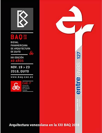 El pasado 17 de noviembre, días antes de iniciarse la XXI Bienal de Arquitectura de Quito (BAQ) 2018 (llevada a cabo entre el 19 y el 23 de este mes), apareció el nº 127 de la revista entre rayas que reúne los 25 proyectos participantes en dicho evento por Venezuela en las distintas categorías de confrontación, coordinados por el Arq. Jesús Yépez. Con esta edición la revista entre rayas publica por décimo tercera vez un número dedicado a la BAQ, lo que la convierte en referente único de la arquitectura venezolana en los últimos 24 años.