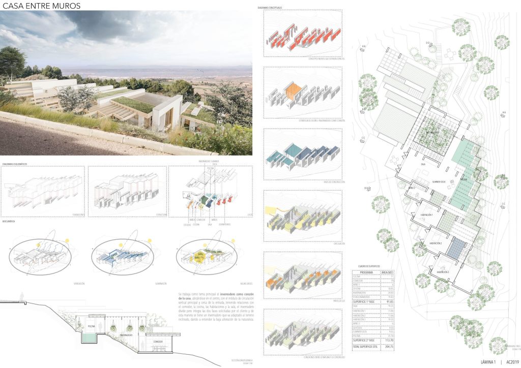 Es una propuesta bien conceptualizada y elaborada, donde es posible apreciar una intención deliberada por generar una mínima afectación en el terreno. (…) Responde la casa entre muros a una arquitectura de bajo impacto, algo de lo cual se habla mucho, pero que pocas veces se logra proyectar”.