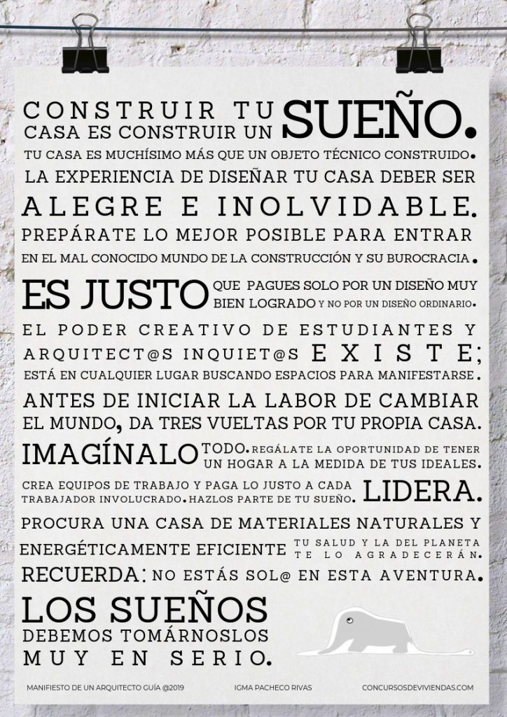 Dicho portal, mediante un claro y un muy bien estructurado sistema de organización liderado por un grupo de 5 profesionales de 4 países, está dedicado a promover el diseño de viviendas con materiales naturales y energéticamente eficientes mediante la modalidad del concurso. Para ello, invitan a los interesados en obtener diversas ideas de lo que puede ser su hogar a manifestarse vía electrónica y, previo acuerdo a partir de un presupuesto global que se prepara, luego de llevar a cabo reuniones de trabajo periódicas, fungiendo de intermediarios, organizan con la información obtenida las bases de un concurso que vendrán acompañadas de toda la información técnica necesaria, y que será lanzado a través de una página web vinculada a las más prestigiosas plataformas especializadas en certámenes de arquitectura. El cliente obtendrá así una variada gama de posibilidades con garantías de calidad haciendo una sola inversión.