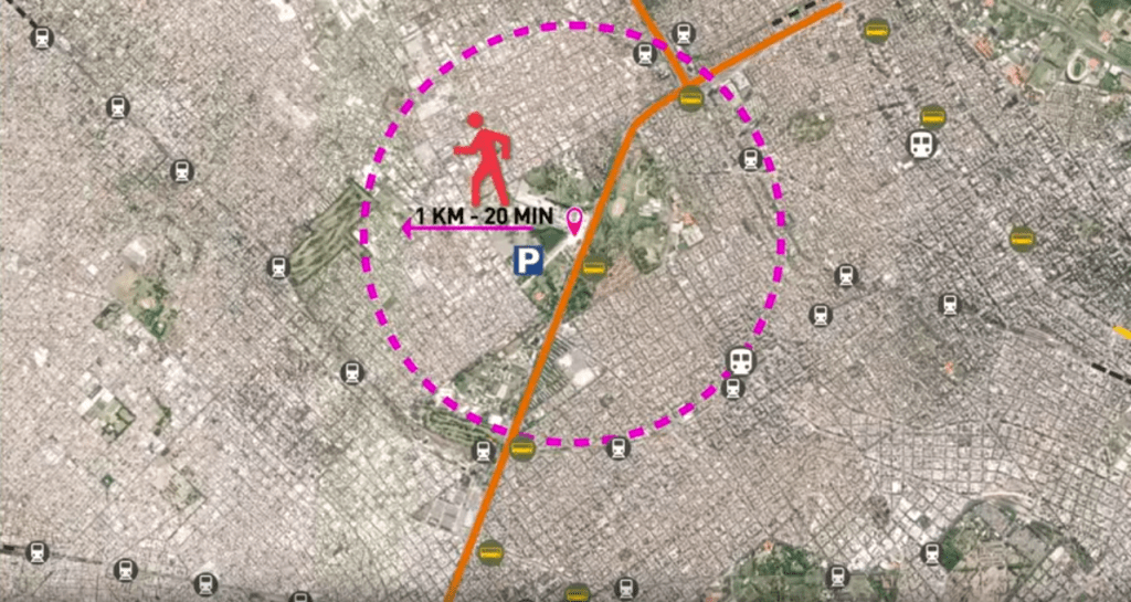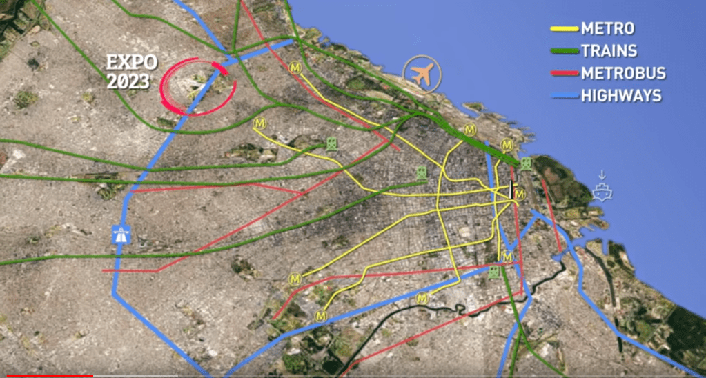 Tal y como se estipulaba en las bases del concurso, la idea presentada “se trata de un gran boulevard, de 140 metros de ancho y 800 metros de largo, que organiza el Masterplan ubicando, hacia sus lados, todos los pabellones de la Expo y, en su recorrido, el resto de las actividades de la misma. El boulevard es concebido como un espacio de carácter público que organiza el flujo de los visitantes y los dirige hacia los accesos de las diferentes actividades, continúa en un puente para peatones y ciclistas que cruza la Avenida General Paz y conecta el sitio, ubicado en el límite de la Provincia de Buenos Aires, con la Ciudad Autónoma de Buenos Aires. El encuentro entre el boulevard y el puente marcará el acceso principal de la Expo 2023.
