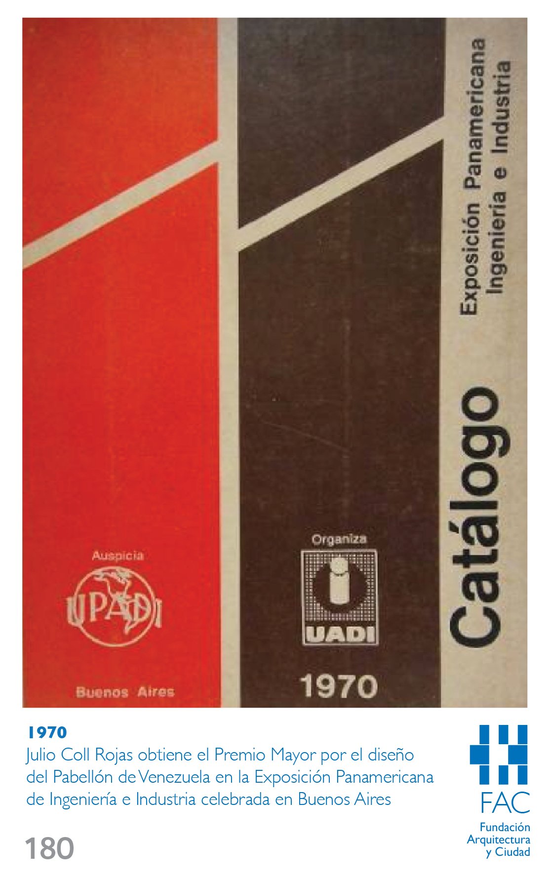 También resulta revelador el que Venezuela se haya presentado a la Expo con un pabellón (stand) diseñado por el joven arquitecto Julio Coll Rojas, quien además de su interés por la actividad profesional y docente ya asomaba un claro compromiso con la actividad gremial lo que seguramente lo levó a ser considerado por el Colegio de Ingenieros de Venezuela como el profesional idóneo para llevar adelante el proyecto.