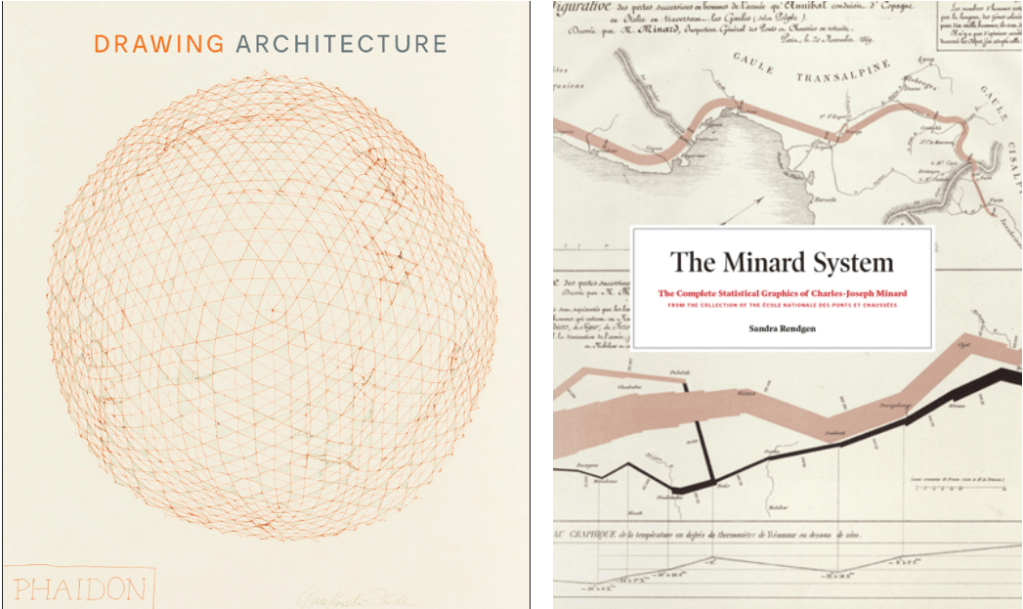 Los coffee table tienen mala prensa, pero estos dos libros grandes son grandes libros. Drawing Architecture reúne casi tres centenares de dibujos, desde la planta de un santuario sumerio grabada hace más de 4.000 años en la escultura pétrea del rey-arquitecto Gudea hasta la Elbphilharmonie de Herzog & de Meuron, la casa Rode de Pezo von Ellrichshausen o el Centro cultural Citroën de Caruso St. John. La autora, Helen Thomas —una arquitecta británica que tras enseñar en Londres y colaborar con los archivos de dibujos del RIBA y el V&A ejerce hoy como investigadora en la ETH de Zúrich—, comenta informativa e inteligentemente cada uno de los dibujos, dos tercios de los cuales pertenecen a los siglos XX y XXI, e incluyen muestras de todos los grandes maestros modernos, entre los cuales el Fuller que ilustra la portada con una esfera geodésica. La presentación, sin embargo, no es cronológica —aunque se incluye una útil timeline al final del volumen—, prefiriéndose enfrentar dibujos de diferentes épocas con el ánimo de provocar la imaginación del lector; un propósito asociativo que resulta convincente cuando se hace dialogar a Kahn con Palladio, o a Moneo con Choisy, pero más difícil de entender en algunos de los casos.