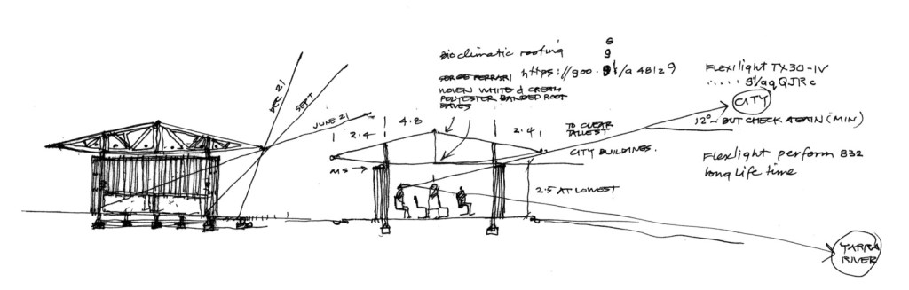 Tal y como se estipulaba en las bases del concurso, la idea presentada “se trata de un gran boulevard, de 140 metros de ancho y 800 metros de largo, que organiza el Masterplan ubicando, hacia sus lados, todos los pabellones de la Expo y, en su recorrido, el resto de las actividades de la misma. El boulevard es concebido como un espacio de carácter público que organiza el flujo de los visitantes y los dirige hacia los accesos de las diferentes actividades, continúa en un puente para peatones y ciclistas que cruza la Avenida General Paz y conecta el sitio, ubicado en el límite de la Provincia de Buenos Aires, con la Ciudad Autónoma de Buenos Aires. El encuentro entre el boulevard y el puente marcará el acceso principal de la Expo 2023.