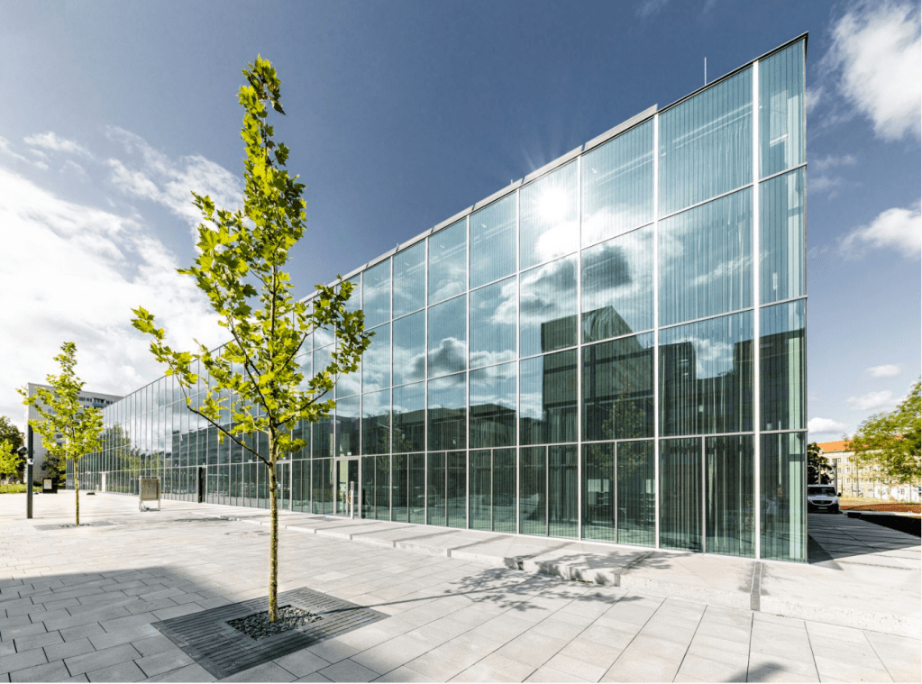 El estudio de Barcelona Addenda Architects —Roberto González, Anne Hinz, Cecilia Rodríguez, Arnau Sastre y José Zabala— resultó ganador del concurso celebrado en 2015, imponiéndose a las otras 830 propuestas presentadas, para construir este nuevo museo en la ciudad alemana de Dessau —sede de la Bauhaus entre 1925 y 1932—, cuya inauguración coincide con el centenario de la fundación de esta escuela en Weimar. Situada en el casco histórico de Dessau y junto a un parque, la caja de vidrio rectangular retrasa un poco su posición respecto a la alineación de los edificios de la calle. Con una superficie construida de 5.513 metros cuadrados y un presupuesto de 15.500.000 euros, el edificio con una escala urbana intermedia orienta sus cuatro fachadas según los ejes cardinales. La estructura consiste en una viga de 90 metros de largo, sustentada por dos núcleos de hormigón, con voladizos de 15 metros en cada extremo. Rodeado por una fachada de vidrio de 14 metros de altura, este puente queda suspendido sobre un espacio destinado a exposiciones temporales y otros eventos. La colección permanente de la Bauhaus se encuentra en un cuerpo hermético, monolítico y diáfano situado en la primera planta, al que se accede a través de escaleras y ascensores ubicados en los dos volúmenes que sirven de apoyo.