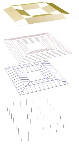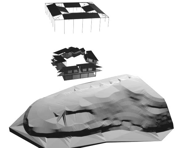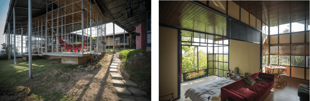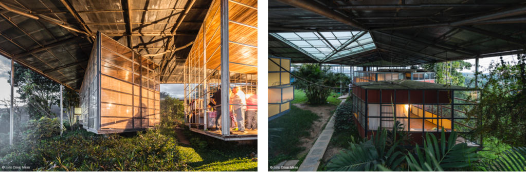 Aquí la tipología de la casa no está definida a partir de un espacio único abierto en su patio central, en su lugar la definición de las unidades habitables, independientes, perfeccionadas a partir de los gustos y las individualidades establecen la idea del pequeño centro comunitario. Lo asombroso de su construcción es que a pesar de estar sustentada espacialmente en una retícula tridimensional que garantiza su crecimiento y variabilidad, nunca se perpetúa como una barrera que limita las posibilidades de expresar independientemente los vuelos, ansiedades y gustos personales”.