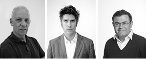 Los autores de Los hechos de la arquitectura. De izquierda a derecha: Fernando Pérez Oyarzun, Alejandro Aravena y José Quintanilla Chala