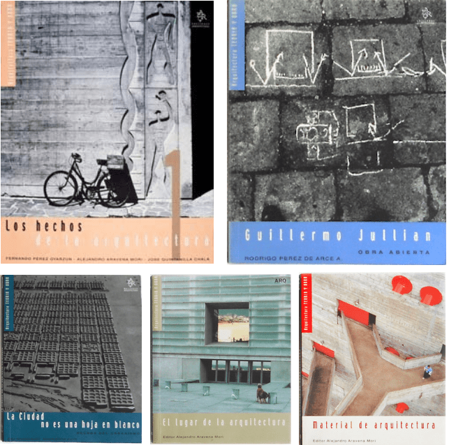 Con el libro Los hechos de la arquitectura Ediciones ARQ, editorial de la Escuela de Arquitectura de la Pontificia Universidad Católica (PUC) de Chile, abre en 1999 una serie de publicaciones que buscaban dotar al estudiante de arquitectura de una bibliografía que lo acompañara en la comprensión inicial de la disciplina que decidieron profesar. Le siguieron dentro de esta línea, formando una pequeña colección que guardó el mismo formato (21.00 x 17.50 cms.) y similares criterios de diagramación, todos profusamente ilustrados con fotografías, planos, dibujos y láminas a plena página en sepia y blanco y negro: Guillermo Jullian. Obra abierta (2000) de Rodrigo Pérez de Arce; La ciudad no es un hoja en blanco. Hechos del urbanismo (2000) de Josep Parcerisa y María Rubert de Ventós; y El lugar de la arquitectura (2002) y Material de arquitectura (2003) teniendo ambos a Alejandro Aravena como editor.