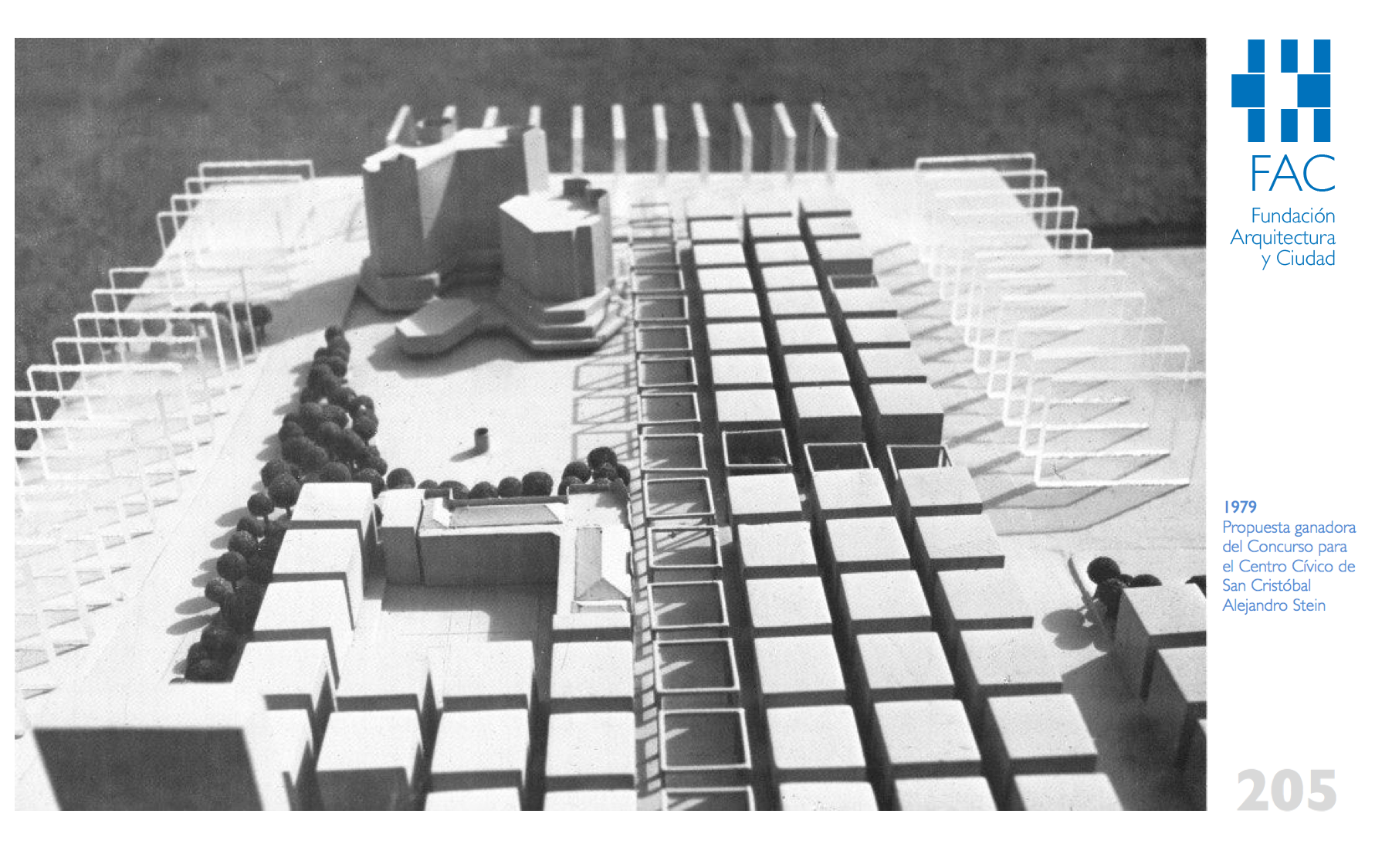 Entre 1979 y 1981 cuatro fueron los Concursos Nacionales que tuvieron entretenidos a los arquitectos del país, marcando un período de mucha actividad para quienes apostaban a tal mecanismo como vía para mantenerse activos, obtener trabajo, manifestar sus creencias o lanzarse al estrellato: el del Centro Cívico de San Cristóbal (1979), el de la Plaza Caracas (1979), el del Museo de Arte La Rinconada en Caracas (1980) y el de la Catedral de San Tomé de Guayana en Puerto Ordaz (1981). Hoy nos dedicaremos a reseñar el primero de ellos ganado por el equipo encabezado por el arquitecto Alejandro Stein, quien contó como colaboradores con Raúl Grioni, Alfredo Carrillo, Edmundo Peralta, Inés Agüero y Francisco Villarroel y como personal técnico de apoyo con María Elena Garcerá, Carlos Muñoz, Tomás Hernández, Rosita Dinis y Carlos Mosquera.
