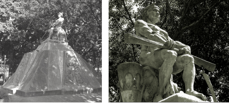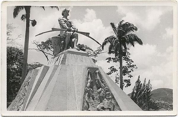 Alejandro Colina (1901-1976) el autor de la escultura del cacique Tiuna que preside la plaza, alcanzó con ella una de sus obras más logradas. Más conocido por la estatua de María Lionza, encargada originalmente para ser el pebetero de los III Juegos Deportivos Bolivarianos de 1951 a realizarse en Caracas en los estadios de la UCV, Colina (como se recoge en https://es.wikipedia.org/wiki/Alejandro_Colina) es considerado “uno de los máximos exponentes de la escultura monumental venezolana, y enmarcará gran parte de su obra dentro del bagaje cultural de las comunidades indígenas autóctonas, celebrando con sus esculturas los mitos, leyendas, diosas y caciques de las etnias venezolanas”. Por otro lado, desde la misma fuente documental se apunta que “el carácter monumental de la obra de Colina está determinado por la necesidad de integrarse a los espacios urbanos, en el marco de la modernización de las ciudades venezolanas, como, por ejemplo, es el caso de la transformación de Caracas en una metrópoli. Este proceso de transformación, iniciado a finales del siglo XIX, se consolida entre de los años 30 a 60 del siglo XX, por lo cual constituye el marco histórico, socio-cultural y plástico–visual, en el cual se desarrolla la obra de Colina, artista que demostró una cabal comprensión del espacio urbano moderno y de la correspondiente escala.”