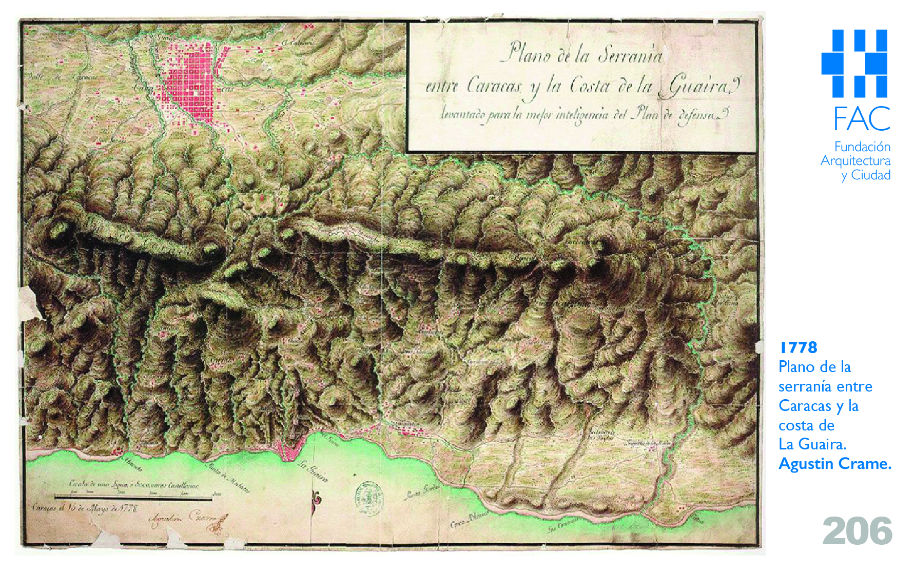 Las referencias de Crame sobre la vertiente norte de la serranía de El Ávila, frente al mar son mas profusas. En el plano que abarca la costa desde Macuto hasta Catia, se identifican más de una veintena de lugares poblados situados en las faldas de la serranía, conectadas por caminos.
