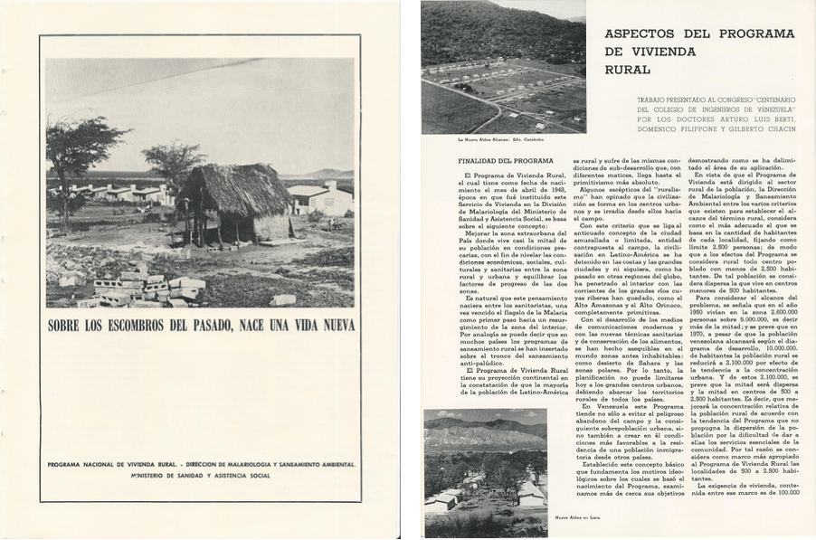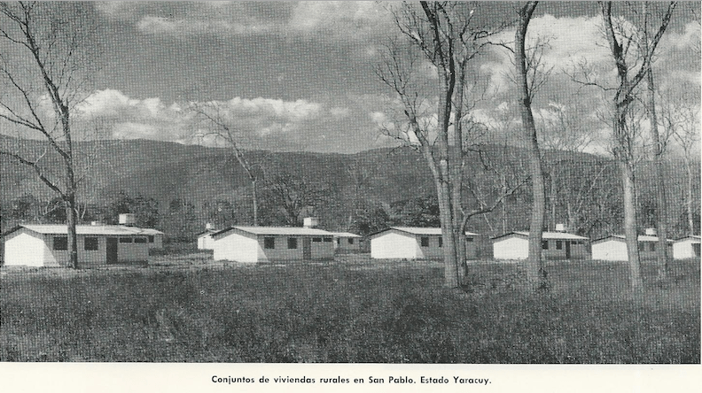 Regresando al tema directamente relacionado con la imagen de nuestra postal, sería bueno recordar que en la pujante Venezuela de los años 50, 60 y 70 los techos de las unidades pertenecientes al “Programa Nacional de Vivienda Rural”, impulsado por el Ministerio de Sanidad y Asistencia Social, que tenía como principal objetivo la “lucha contra el rancho” en ese medio, eran realizados en su totalidad en fibrocemento como muestra de que se había dejado en el pasado el uso de otros materiales que venían asociados a la proliferación de enfermedades. También como demostración de agilidad y eficiencia en su colocación, la cual requería de mano de obra no necesariamente especializada y permitía incorporar al propio usuario en la construcción de las unidades de vivienda ya que el producto venía con un set de elementos e instrucciones que facilitaban su instalación. Tal fue la penetración lograda que en algún momento Graziano Gasparini lo consideró como parte del proceso de transculturización y “modernización” sufrido por la arquitectura popular venezolana como consecuencia del paso de una Venezuela agrícola a una petrolera, donde se fueron sustituyendo por “eternit” un buen porcentaje de las cubiertas hecha con ramas, paja y demás productos vegetales, los techo de tejas y también al conocido «techo de zin». Posteriormente, el uso de otros tipos de lámina como la compuesta por aluminio y un aislante de asfalto liquido conocido por su nombre comercial de “Acerolit” (elaborando por Cindu) han entrado a formar parte del espectro de materiales ampliamente utilizado para abaratar costos y competir con el fibrocemento.