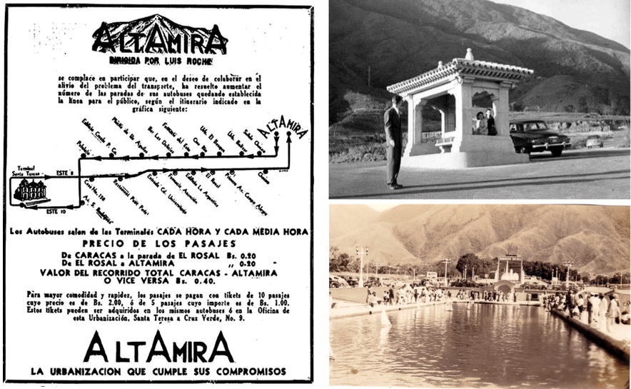 El inicio de la venta de terrenos en Altamira fue un proceso que tuvo que lidiar durante algún tiempo con el problema de la lejanía del casco histórico. Por ello estuvo acompañado de una imaginativa y activa campaña que llevó a la incorporación de una ruta de transporte publico que la conectaba con el centro de Caracas, la cual dio pie al diseño de unas muy características paradas diseminadas por la urbanización e hizo de la visita a la zona un obligado paseo dominical para quienes no lo hacían en automóvil. Los precios del metro cuadrado sobre las dos avenidas principales de 24 metros de ancho denominadas entonces como El Ávila -al este- y El Parque -al oeste- (hoy Luis Roche y San Juan Bosco, respectivamente) y sobre la Transversal 6 eran de 25 bolívares, mientras que en el resto se colocó en 20.