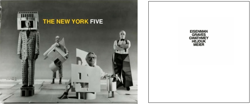Hacía ya trece años que había aparecido Cinco Arquitectos (Five Architects), libro que, junto a la exposición organizada en el MoMA por Arthur Drexler en 1967, podríamos decir que en 1972 presentó en sociedad (en este caso de la mano de Drexler, Colin Rowe y Keneth Frampton), a un grupo de arquitectos formados en Nueva York compuesto por Peter Eisenman, Michael Graves, Charles Gwathmey, John Hejduk y el propio Meier. Vistos como grupo al momento de su aparición, conformaron lo que Helio Piñon en 1984 calificó como una de las “neovanguardias” (fundamentalmente valorada por la obra de Hejduk y Eisenman) que surgieron a mediados de los años sesenta y los setenta del siglo XX, reflejando en este caso una lealtad común a una forma pura de la arquitectura moderna. Posteriormente los miembros del grupo fueron realizando un trabajo divergente, negando cualquier relación con los demás. Graves se apuntó decididamente al postmodernismo. Eisenman ha limitado su trabajo a las imágenes y los modelos de los diseños arquitectónicos de futuro en los medios impresos, aunque se convirtió en el arquitecto más asociado con el deconstructivismo. Gwathmey también se ha mantenido fiel al estilo moderno, aunque su pureza se ha visto atenuada por la realidad de las grandes comisiones corporativas y públicas, y Meier ha sido el más fiel a la estética moderna y al estilo de Le Corbusier.