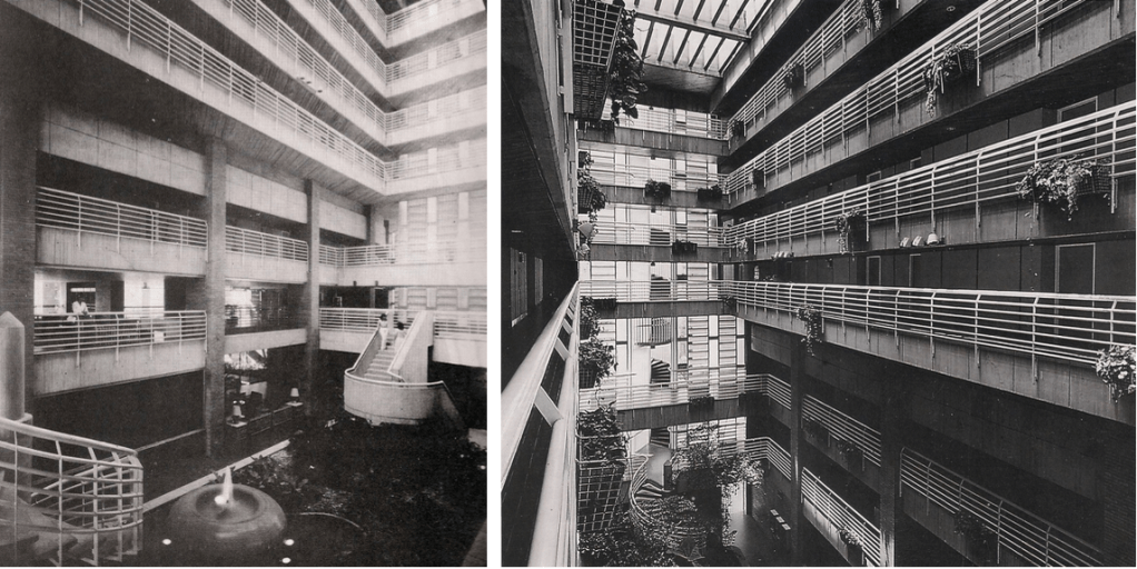 Del texto dedicado al edificio elaborado para el catálogo de la exposición Alcock. Obras y proyectos. 1959-1992, realizada en los espacios de la Galería de Arte Nacional entre octubre y diciembre de 1992, con curaduría de Hannia Gómez y William Niño Araque, rescatamos lo siguiente: “El hotel, como si fuera una gran casa, es la sumatoria de una serie de gratos espacios de estar. Entre estos, los espacios ambientalmente más logrados son la cafetería, el patio principal del hotel, con escaleras con cierto carácter escultórico y cuya fachada Oeste es una piel de metal con vidrio que va filtrando la luz, y, finalmente, la terraza del árbol.”
