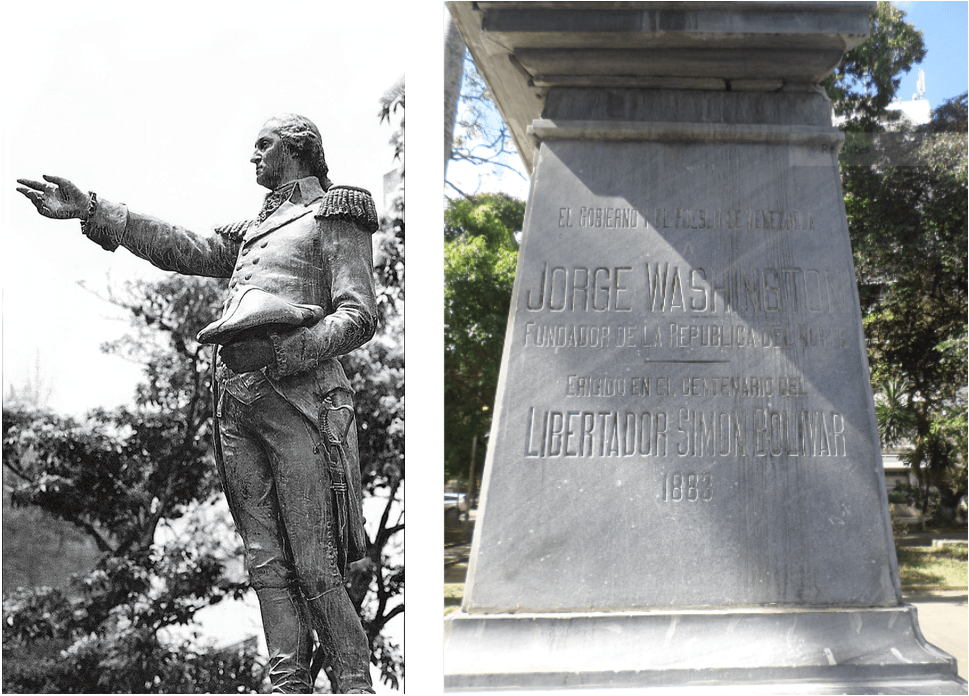Pues bien, es en la intersección de la Avenida de La Vega con la 19 de Diciembre, en el espacio dejado libre por La India, donde en 1921, cumpliéndose 111 años del 19 de abril, se colocará la escultura de George Washington realizada por el artista estadounidense William Rudolf O’Donovan (1844-1920), procedente de su ubicación original entre la Basílica de Santa Teresa y el Teatro Nacional, lugar que ocupaba desde 1883, espacio que desde 1888 pasó a denominarse como Plaza Washington. Simultáneamente, ese mismo día, se “descorrió el velo” de la estatua de Bolívar en el Central Park de Nueva York (del escultor venezolano Nicolás Veloz) según relata Enrique Bernardo Núñez, cronista de la ciudad, en su libro La ciudad de los techos rojos (Calles y esquinas de Caracas) (1947).