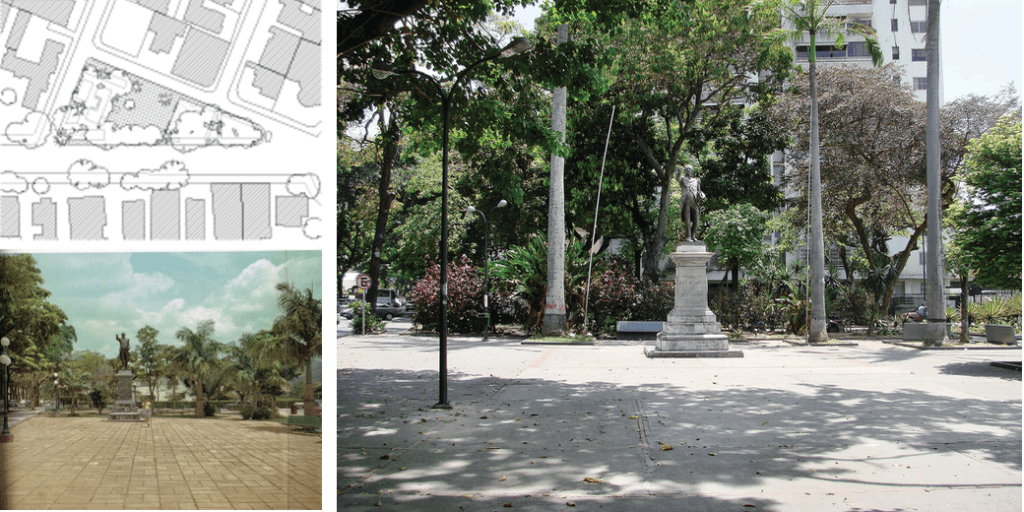 Este coherente conjunto, testimonia una obra de gobierno que intentó cambiar el carácter colonial de Caracas introduciendo elementos del urbanismo decimonónico francés, tales como calles arboladas, paseos y plazas. Junto a la Plaza San Jacinto, la adyacente a la Iglesia de Altagracia, y La Candelaria, ubicadas en esquina, estas transformaciones urbanas estarían destinadas a enriquecer el damero fundacional.