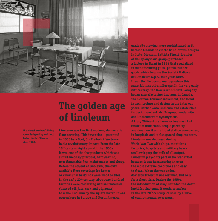 introducción del vinilo amenazó de muerte al linóleo que resurgiría a finales de la centuria llevado por una ola de conciencia