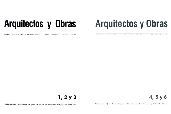 Fruto de la experiencia denominada “Arquitectos y obras”, asignatura perteneciente al plan de estudios cuyo objetivo fue registrar el quehacer de un grupo de arquitectos venezolanos contemporáneos, quienes asistieron como invitados especiales a los cursos, en los cuales, se analizó y criticó sus obras, se hizo el relevamiento de éstas, su registro fotográfico y maquetas, aparecieron en 1993, 1994 y 1996 tres publicaciones durante la gestión de José Luis Colmenares contando con la coordinación de Alberto Navarro Gurovich, primero como Director de la Escuela y luego como Director del Centro de Investigación y Extensión. La primera estuvo dedicada a Joel Sanz, Juan Carlos Parilli y Francisco Arocha; Jorge Rigamonti; y Manuel Delgado. La segunda a Doménico Silvestro, Enrique Larrañaga y Fernando Lugo. Y la tercera a Pablo Lasala, Jesús Tenreiro y José Miguel Galia.