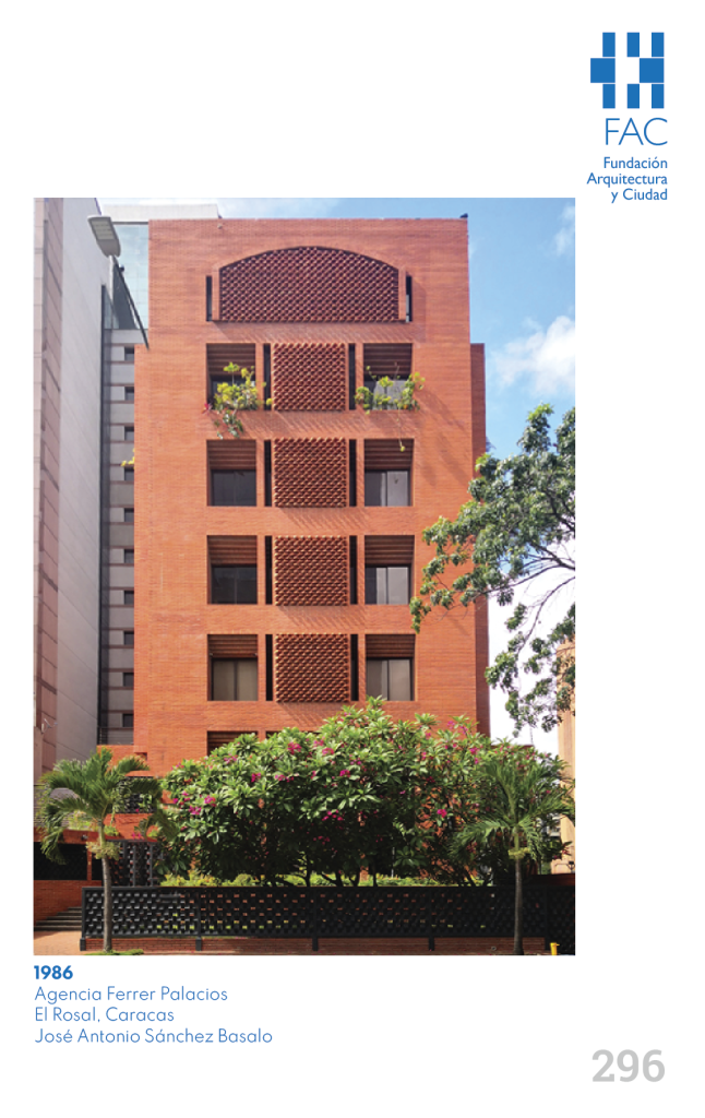 Así, a mediados de la década de los 80 la empresa inmobiliaria más antigua, de mayor experiencia y trayectoria del país, fundada en 1940 por Félix Ferrer Palacios (la Agencia Ferrer Palacios), ubicada desde su creación en el centro de Caracas, decide en virtud del crecimiento de su cartera de clientes construir su nueva sede al oeste de El Rosal sobre la avenida Venezuela. El proyecto será realizado por el joven arquitecto José Antonio Sánchez Basalo (egresado de la UCV en 1983), quien contará con la asesoría de la reconocida oficina DGR (Díquez, González y Rivas) con quienes ya había trabajado.