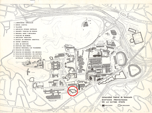 Desde 1958, cuando Carlos Raúl Villanueva es sometido a una especie de ostracismo por su importante aporte como arquitecto en tiempos de la dictadura perezjimenista, la Ciudad Universitaria de Caracas (CUC), aunque había llegado a realizarse en un alto porcentaje, tenía aún pendiente la ejecución de una serie de proyectos y obras que atenderían necesidades no del todo satisfechas en el plan piloto original. Sobre ellos el Maestro no dejó de trabajar ahora con la colaboración de Gorka Dorronsoro y Emilio Palacios egresados de la FAU UCV (el primero en 1963 y el segundo en 1967) quienes, aún siendo estudiantes, se sumarían al equipo que ya integraba Juan Pedro Posani desde 1949.