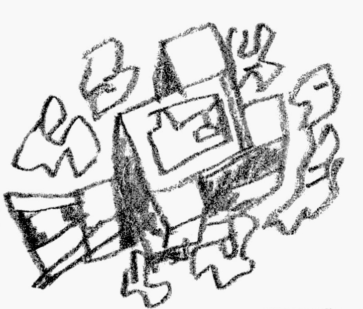 Boceto del Maestro Villanueva que data de 1968 del planteamiento volumétríco de la ampliación del Museo de Bellas Artes.Vista del Museo de Bellas Artes y el conjunto de sus sucesivas ampliaciones en una aerofotografía de Paolo Gasparini.