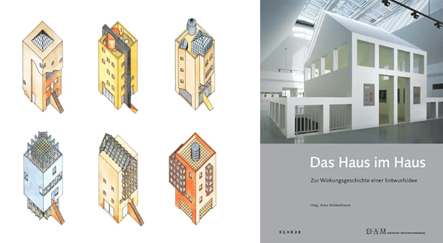 5. Oswald Mathias Ungers. Izquierda: “Project for a Group of Houses”, Marburg, Germany, 1976. Derecha: Portada del libro Casa en la casa. Sobre la historia de una idea de diseño, dedicado a la manera como el tema se hace presente en el Museo de Arquitectura Alemana en Frankfurt Am Main.6. Cuatro casas icónicas de Mario Botta en el Ticino. De izquierda a derecha y de arriba a abajo: Riva San Vitale (1971-1973), Ligornetto (1975-1976), La Rotonda de Stabio (1980-1982) y Morbio Superiore (1982-1983).