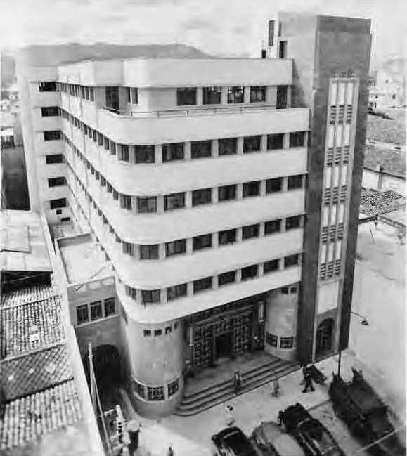 1953• Se concluye la construcción iniciada el año anterior y pone en servicio el edificio sede del Banco Mercantil y Agrícola, ubicado en la avenida Este 4 (hoy av. Universidad), esquina de San Francisco, Caracas, proyectado por la empresa Velutini y Bergamín, C.A., integrada por el ingeniero Rafael Emilio Velutini (1911-1987) (FI UCV 1936) y el arquitecto Rafael Bergamín (1891-1970) (Escuela de Arquitectura de Madrid -1918 / UCV reválida en 1939).