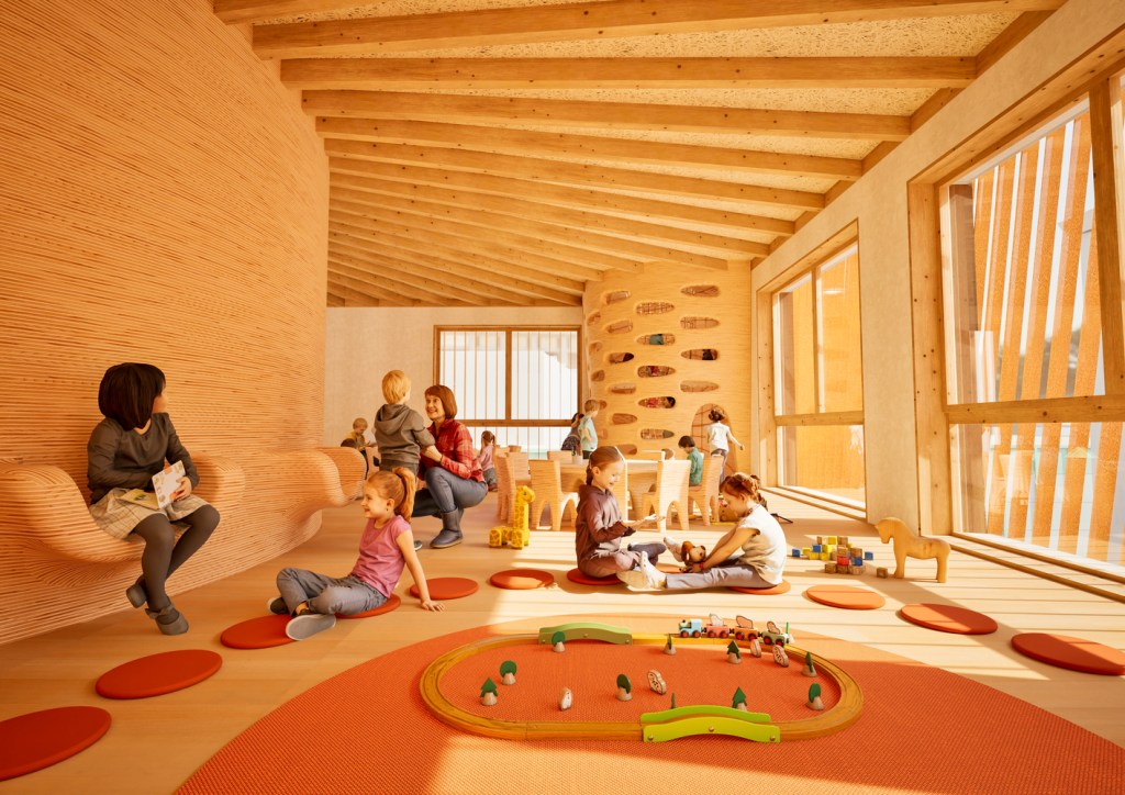 Kéré Architecture ha revelado el diseño de una guardería vertical en la Universidad Técnica de Múnich (TUM) en Alemania. El centro, denominado «Ingeborg Pohl Kinderoase an der TUM», se construirá en madera según lo permitido por las normas y reglamentos locales en materia de eficiencia energética, confort térmico, protección contra incendios y acústica. El nuevo edificio, ubicado entre el campus principal de la TUM y el comedor universitario, comenzó a construirse el 18 de abril y se espera que esté terminado para fines de 2025.