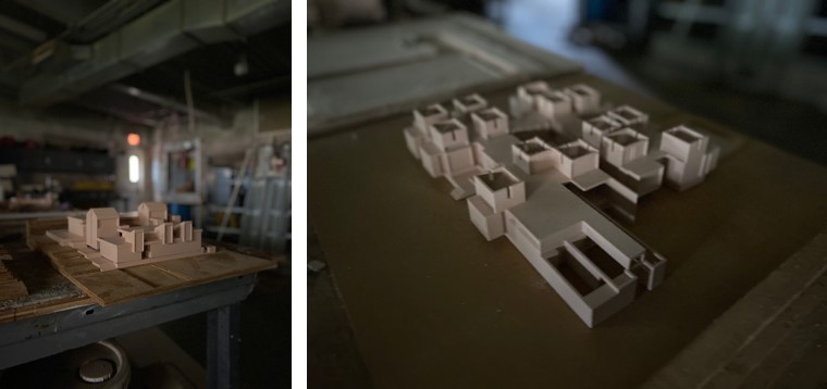 Rafael Urbina y el equipo curatorial presentan una breve línea de tiempo que muestra dibujos a mano escaneados, bocetos y notas. La línea de tiempo muestra el lento proceso de diseño, sus superposiciones entre encargos y concursos, la práctica educada llena de referencias, y la vida espiritual de Jesús y Ana Tenreiro.