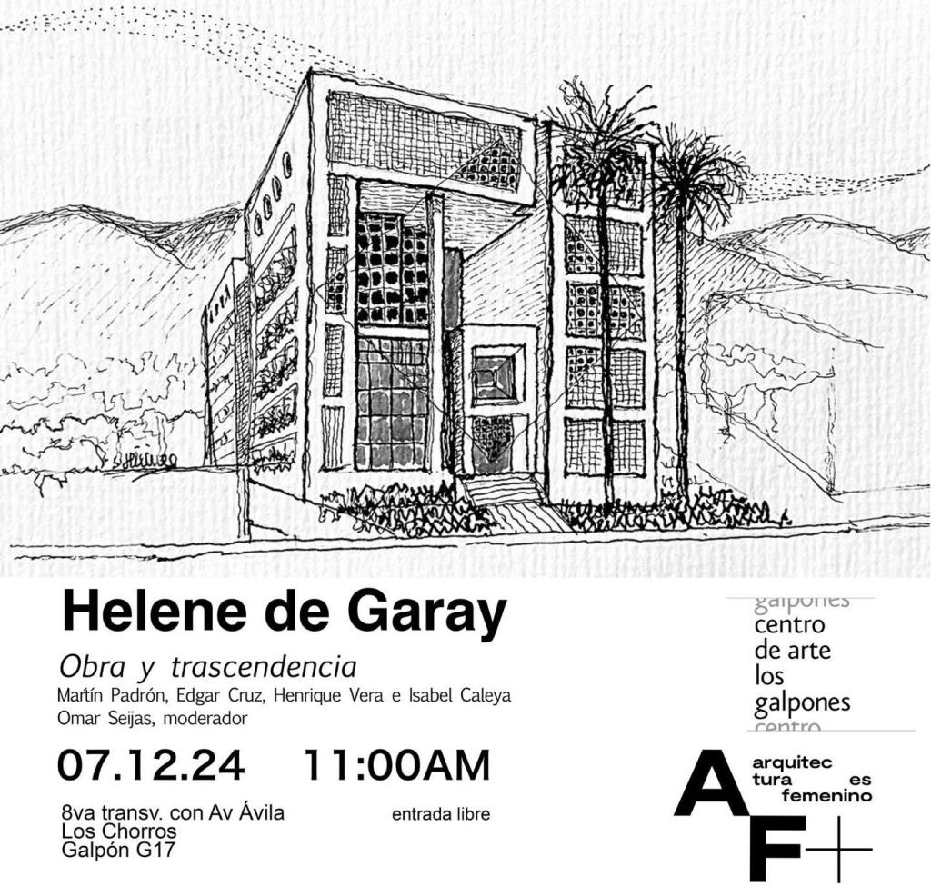 Helene de Garay es arquitecta de la FAU-UCV. Su obra construida es extensa incluyendo el Edificio Fosforera venezolana en Antímano, el Edificio de Oficinas Torre KPMG, el Palacio de Justicia de Barcelona y numerosas edificaciones de vivienda multifamiliar. Ha recibido premios nacionales e internacionales y es directora fundadora de la Fundación Museo de Arquitectura.