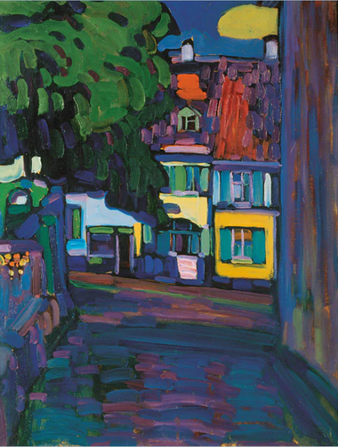 En 1908, Kandinsky y Münter descubrieron el pueblo de Murnau, en los Alpes bávaros. Allí, junto a Jawlensky y Marianne von Werefkin, el estilo de Kandinsky experimentó una metamorfosis acelerada. Inspirado por la técnica de pintura sobre vidrio de los artesanos locales, comenzó a simplificar las formas y a saturar el color de manera antinaturalista.