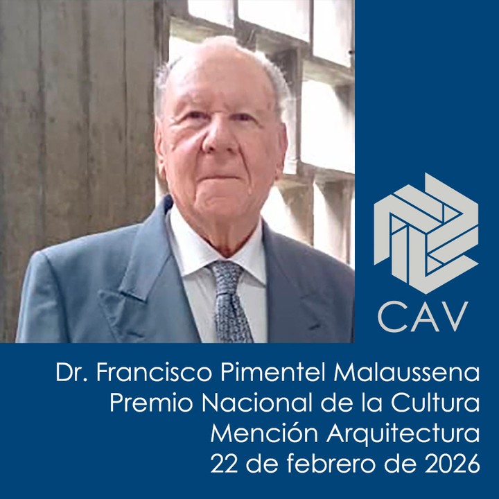 Desde el Colegio de Arquitectos de Venezuela, expresamos nuestra complacencia por el justo conferimiento del Premio Nacional de Cultura, Mención Arquitectura, edición 2026, otorgado por el Ministerio del Poder Popular de la Cultura al Dr. Francisco Pimentel Malaussena.