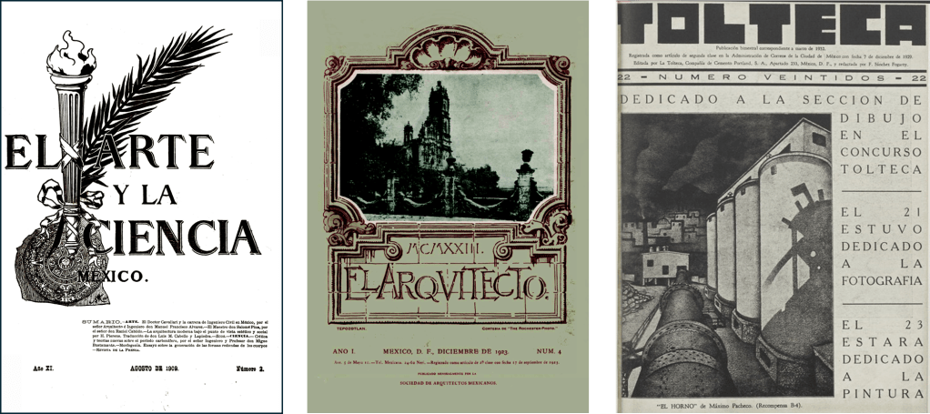 Tras el paréntesis revolucionario, surgió la revista El Arquitecto (1923-1927), impulsada por la Sociedad de Arquitectos Mexicanos (SAM) y dirigida por Alfonso Pallares. Aunque representó un logro por rescatar la memoria de un periodo poco documentado, su alcance era limitado y su estética visual no lograba romper con los formatos tradicionales de la prensa gremial. Considerando que en la década de los veinte los periódicos Excelsior y El Universal, incluyeron secciones de arquitectura, construcción, decoración y urbanismo, serían publicaciones como Planificación (1927-1936), editada por Carlos Contreras, o Tolteca (1928-1932) -y su predecesora Cemento (1925-1930)-, de corte empresarial, dirigidas por Federico Sánchez Fogarty, las que comenzaron a abrir el camino hacia una conciencia arquitectónica y urbana.