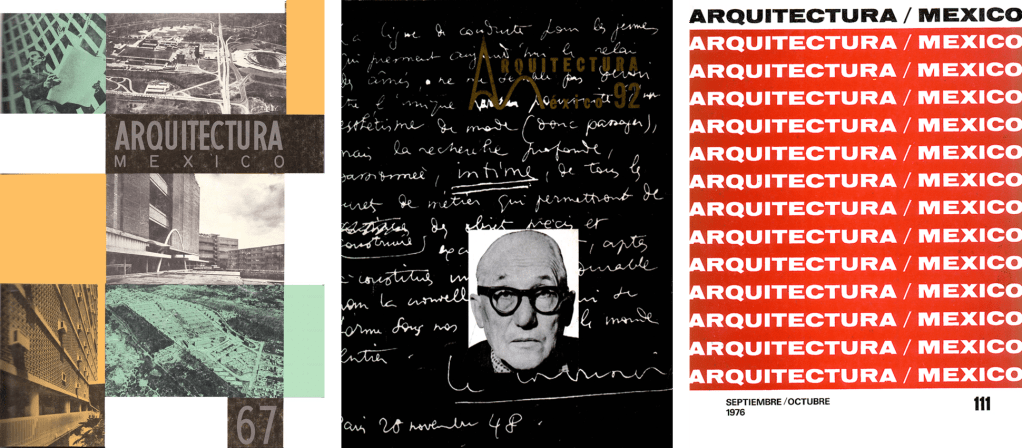 Arquitectura/México se convirtió en receptáculo de artículos memorables como: la serie “Apuntes para un estudio” de José Villagrán García publicada en cinco entregas entre 1939 y 1942 (números 3, 4, 6, 8 y 1), donde el “padre de la arquitectura moderna en México” sentó las bases de su pensamiento teórico, que luego Enrique del Moral complementará con «Villagrán García y la evolución de nuestra arquitectura» (nº 55, septiembre 1956); la traducción de «Grottesco messicano» de Bruno Zevi (nº 62, junio 1958), publicado originalmente en el nº 2 de L’Architettura. Cronache e storia (diciembre de 1955), en el que lanza duras críticas contra la monumentalidad y barroquismo de la Ciudad Universitaria de la UNAM; o el no menos polémico titulado “El escándalo de la Ópera de Sidney” de Félix Candela (nº 98, tercer trimestre de 1967), entre otros.