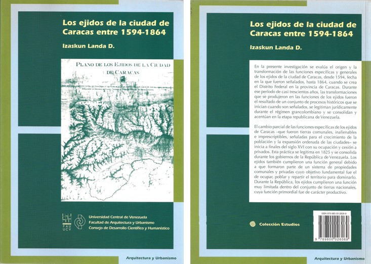 Con la publicación el año 2010 de Los ejidos de la ciudad de Caracas entre 1594-1864 de Izaskun Landa, investigación financiada por dos “Ayudas menores” otorgadas por el Consejo de Desarrollo Científico y Humanístico de la Universidad Central de Venezuela, se logró concretar una nueva alianza ente dicha entidad y Ediciones FAU UCV como parte de la política de apoyo a la divulgación de la labor indagatoria llevada adelante por el cuerpo profesoral de la Facultad de Arquitectura y Urbanismo.