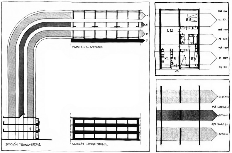 “No se trataba de la misma división moderna entre estructura y cerramiento que Le Corbusier había ensayado en las viviendas Dom-ino (1914). No era solamente una diferenciación técnica sino una delimitación de ámbitos de acción. Por eso, Habraken utilizaba el juego de palabras del soporte, para referirse no solo a su connotación ingenieril como estructura resistente, sino principalmente para rescatar el sentido social como apoyo o posibilitante. La estabilidad del ámbito colectivo permitía la diversidad y el dinamismo de lo individual”, expondrá Palero. Dicho de otra manera, para Habraken el mejor soporte es el que sugiere al individuo formas de ser ocupado.