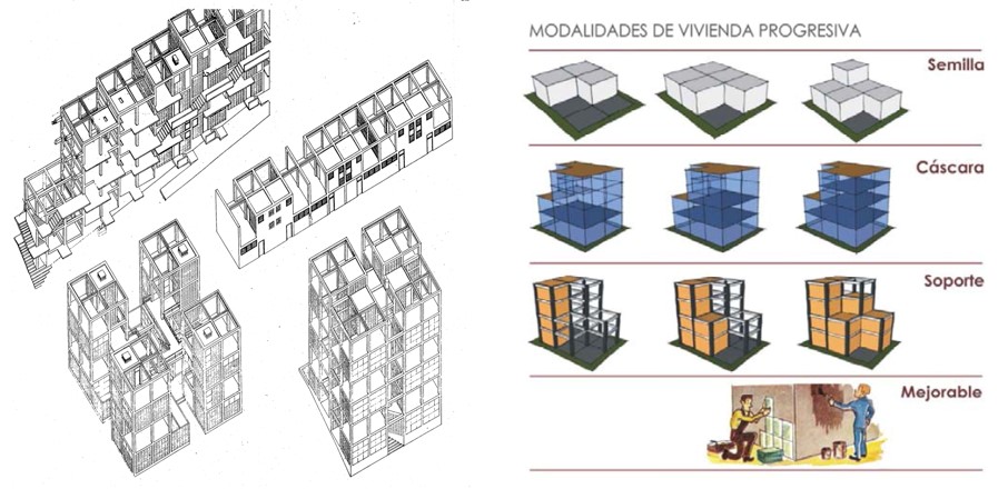 De la capacidad de apostar por un diseño para la transformación, los planteamientos de Habraken remiten a la Casa Schroeder (G. Rietveld, 1924), la Vivienda ampliable (W. Gropius, 1931), las Unité d´Habitation (Le Corbusier, 1952), New Babylon y las utopías nómadas (Constant, 1956-1974), la Arquitectura Móvil (Yona Friedman, 1958), la Vivienda extensible (Van Den Broek, 1963) y el Proyecto Experimental de Vivienda, PREVI (Lima, 1965). Entre quienes recogen sus frutos (o parte de ellos) podríamos mencionar, en Venezuela las indagaciones adelantadas acerca del concepto de vivienda progresiva en el Instituto de Desarrollo Experimental de la Construcción (IDEC), y los resultados del Concurso de Anteproyectos para Desarrollos Urbanísticos de Vivienda Multifamiliar Ampliable para el Área de Asistencia I de la Ley de Política Habitacional de 1992, del cual resultó ganador el equipo integrado por los arquitectos Edwing Otero, Alfredo Sanabria, Hugo D’Enjoy y Juan Luchsinger (OSLD). Y, a nivel internacional, entre otros, las experiencias llevadas adelante por Alejandro Aravena en Chile a través de su oficina ELEMENTAL desde 2001 o los recientes trabajos sobre vivienda social elaborados por la firma catalana Peris+Toral Arquitectes.