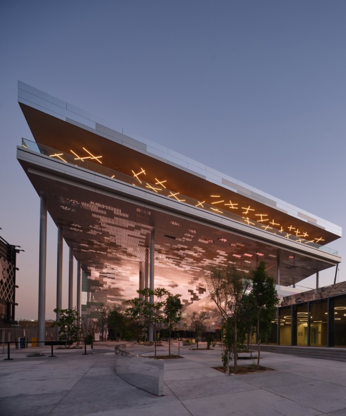 DUBAI, APRIL 7 2021: An exterior view of the French Pavilion at Expo 2020 Dubai. (Photo by Dany Eid/Expo 2020)