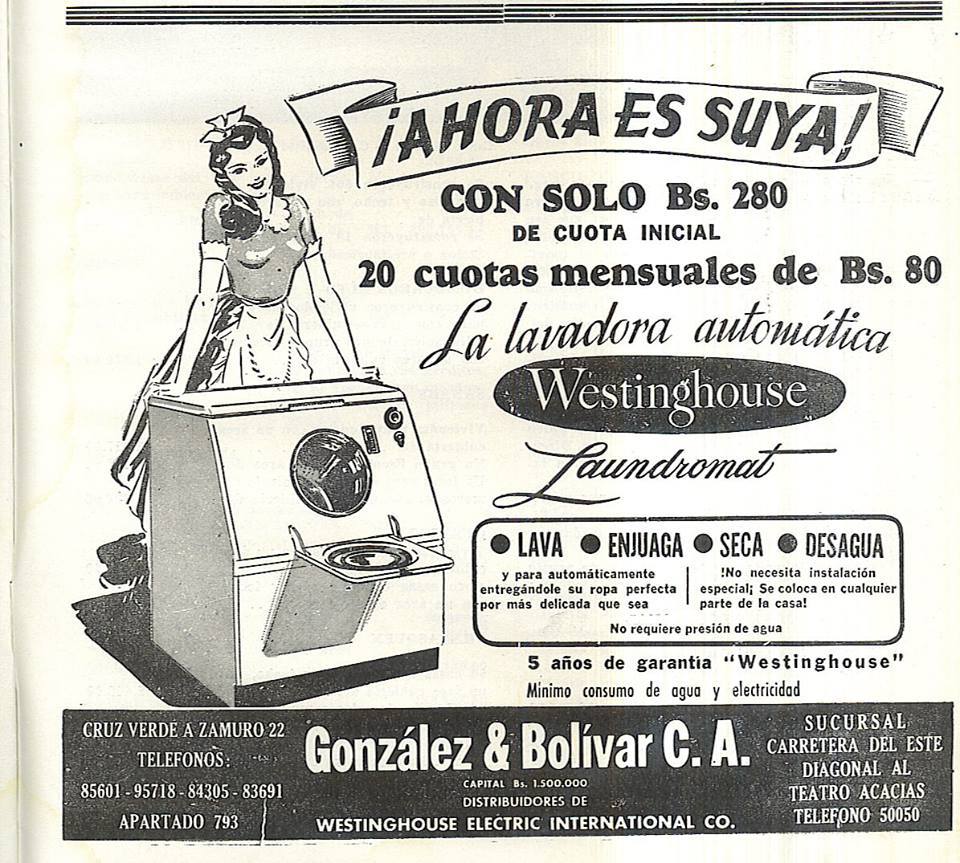 Durante los años 1950, década de febril actividad constructiva en nuestro país, se detecta la presencia como proveedores de ascensores y escaleras mecánicas de tres empresas: las norteamericanas Otis y Westinghouse y la suiza Schindler, que acapararon la casi totalidad de las instalaciones de esos equipos que se realizaron en la capital. En el ramo de electrodomésticos de la ya prestigiosa marca Westinghouse, será la firma González & Bolívar C.A. la que distribuya y lidere las ventas en Caracas.