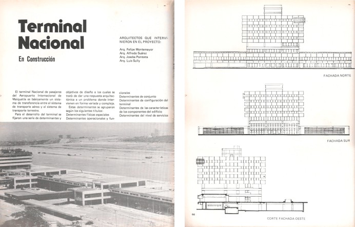 Terminal Nacional (aunque se encontraba en proceso de construcción se acompaña de un material similar al ofrecido para el terminal internacional. Se aclara que participaron en el proyecto los arquitectos Felipe Montemayor, Alfredo Suárez, Joseba Pontesta y Luis Sully).