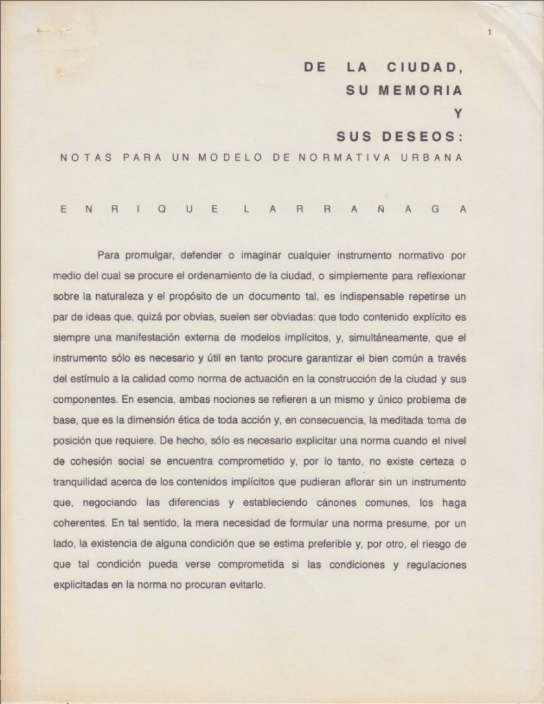 El equipo de Arquitectura HOY asumiría en cierta forma el relevo de Tenreiro-Sesto con otra actitud, dedicándose más a la tarea de registrar el proceso de conceptualización, discusión y presentación de los Planes Parroquiales que se fueron gestando. Es así como, a modo de preámbulo, en el nº 57 del encartado (23/04/94) aparecen “Credo de Caracas” (bajo la responsabilidad de Enrique Larrañaga), “Descentralizar la ciudad y descentralizar el pensamiento” de Miguel Posani y “Retrato de Caracas” de Azier Calvo.