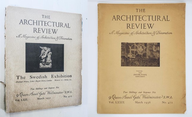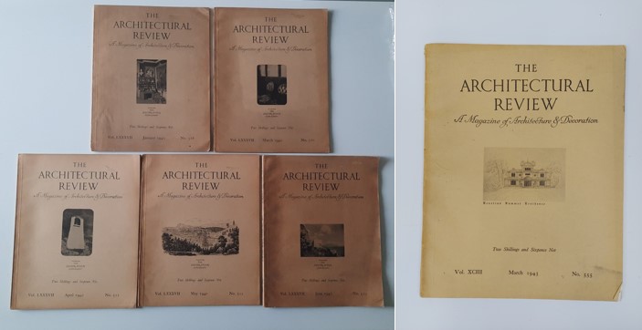 9. AbeBooks (https://www.abebooks.com/magazines-periodicals/Architectural-Review-September-1943-No-561/31021804309/bd); y (https://www.abebooks.com/magazines-periodicals/Architectural-Review-Magazine-Vol-XCVI-572/30833611239/bd)