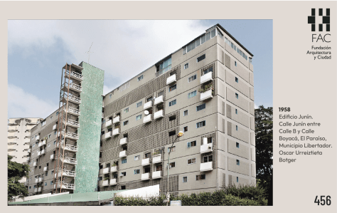 Como excepción que confirma la regla, hoy hemos querido dedicar la postal nº456 y la nota que la acompaña al edificio Junín, proyectado, calculado y construido en 1958 por el ingeniero Oscar Urreiztieta Botger (1925-2008), ubicado en el sector La Paz de la urbanización El Paraíso, en la Calle Junín, entre la Calle Boyacá y la Calle B, a una cuadra del final al oeste de la avenida José Antonio Páez.