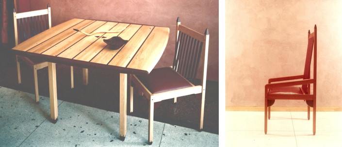 Pues bien, ese contacto, esa combinación, ahí está, sorprendentemente realizado en los muebles de Vestuti. Veamos como él describe su mejor pieza, la mecedora: